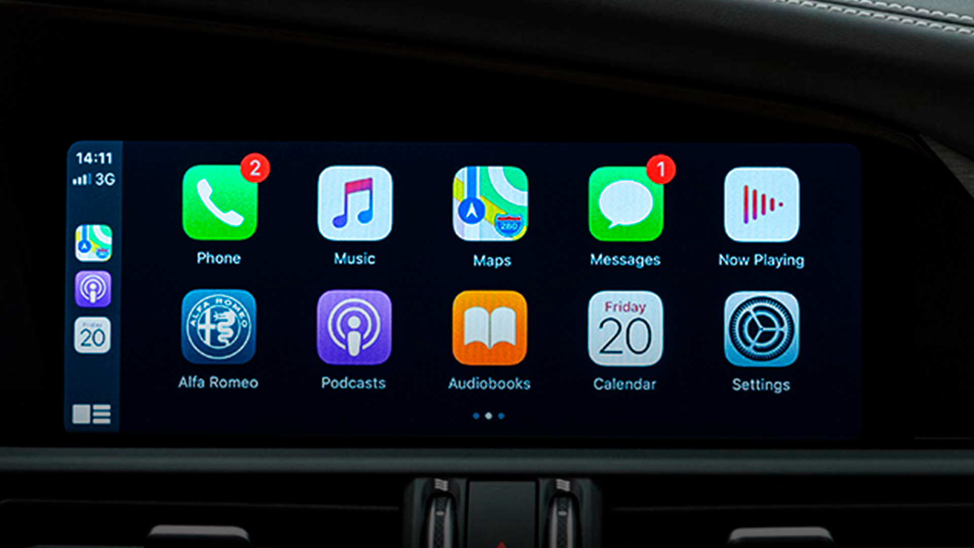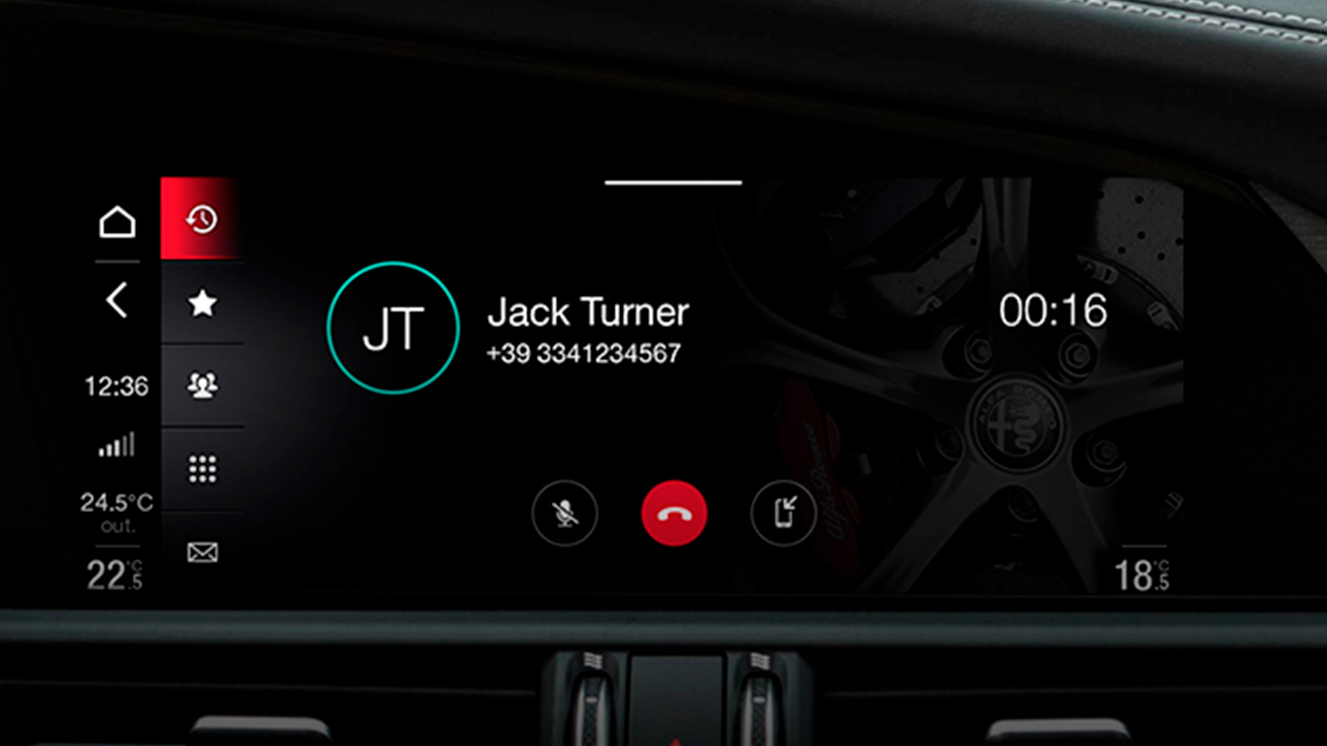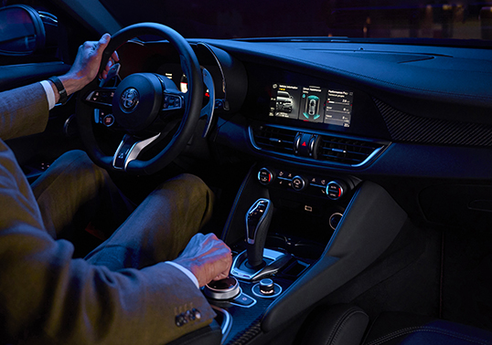 Alfa Romeo Giulia Quadrifoglio informācijas un izklaides sistēmai ir 8,8 collu Multi-Touch ekrāns.