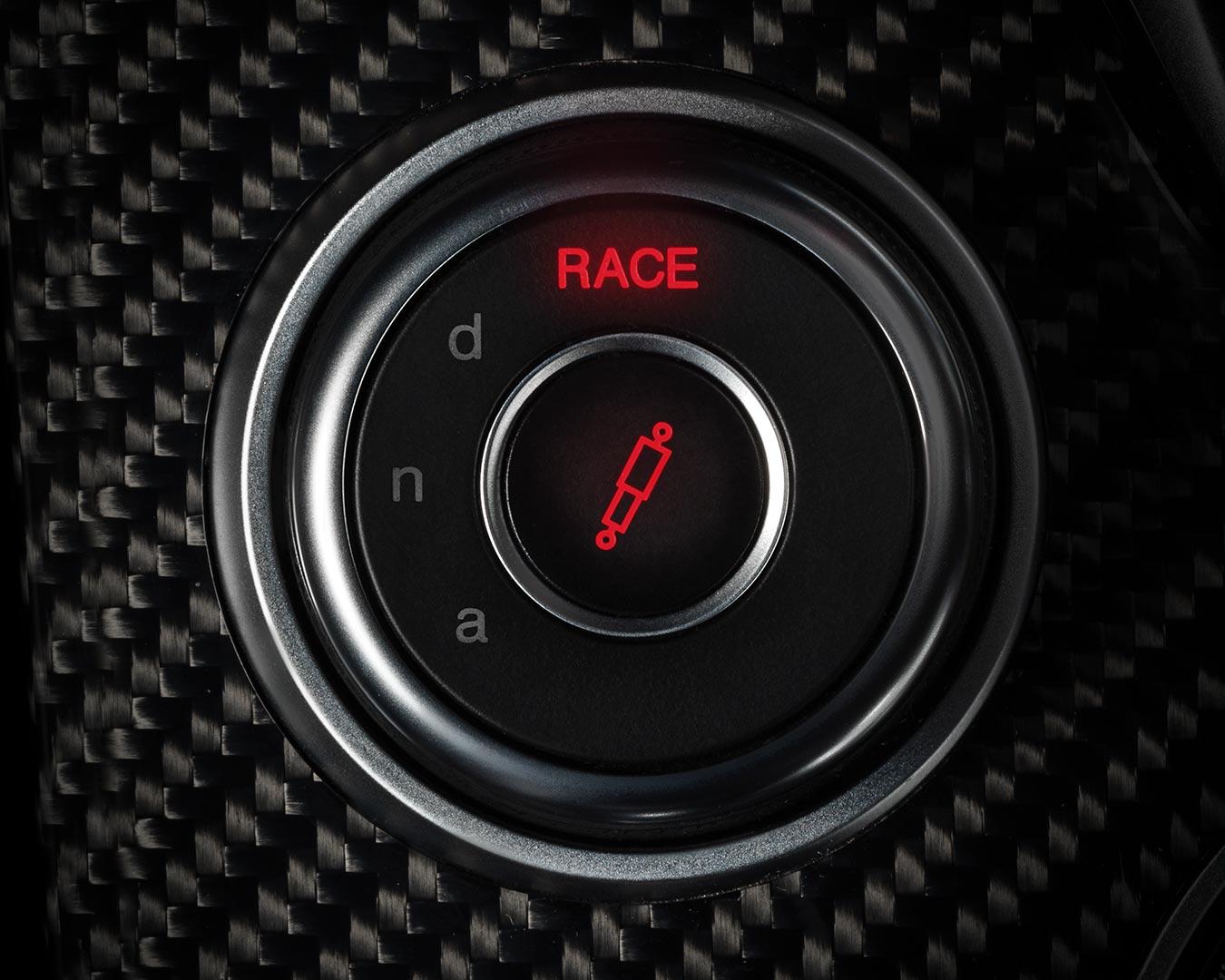 R - Izvēloties sacīkšu režīmu, jūs iegūsiet ekskluzīvu „Quadrifoglio” vadīšanas pieredzi. Ātrumu un pārliecību uz ceļa garantē bremzes, akseleratora pedālis un stūre, kas šajā režīmā reaģē vienā acumirklī. Tāpat sacensību režīms atspējo saķeres un stabilitātes kontroli, vienlaikus aktivizējot „overboost” funkciju, kas sniedz aizraujoša brauciena pieredzi.