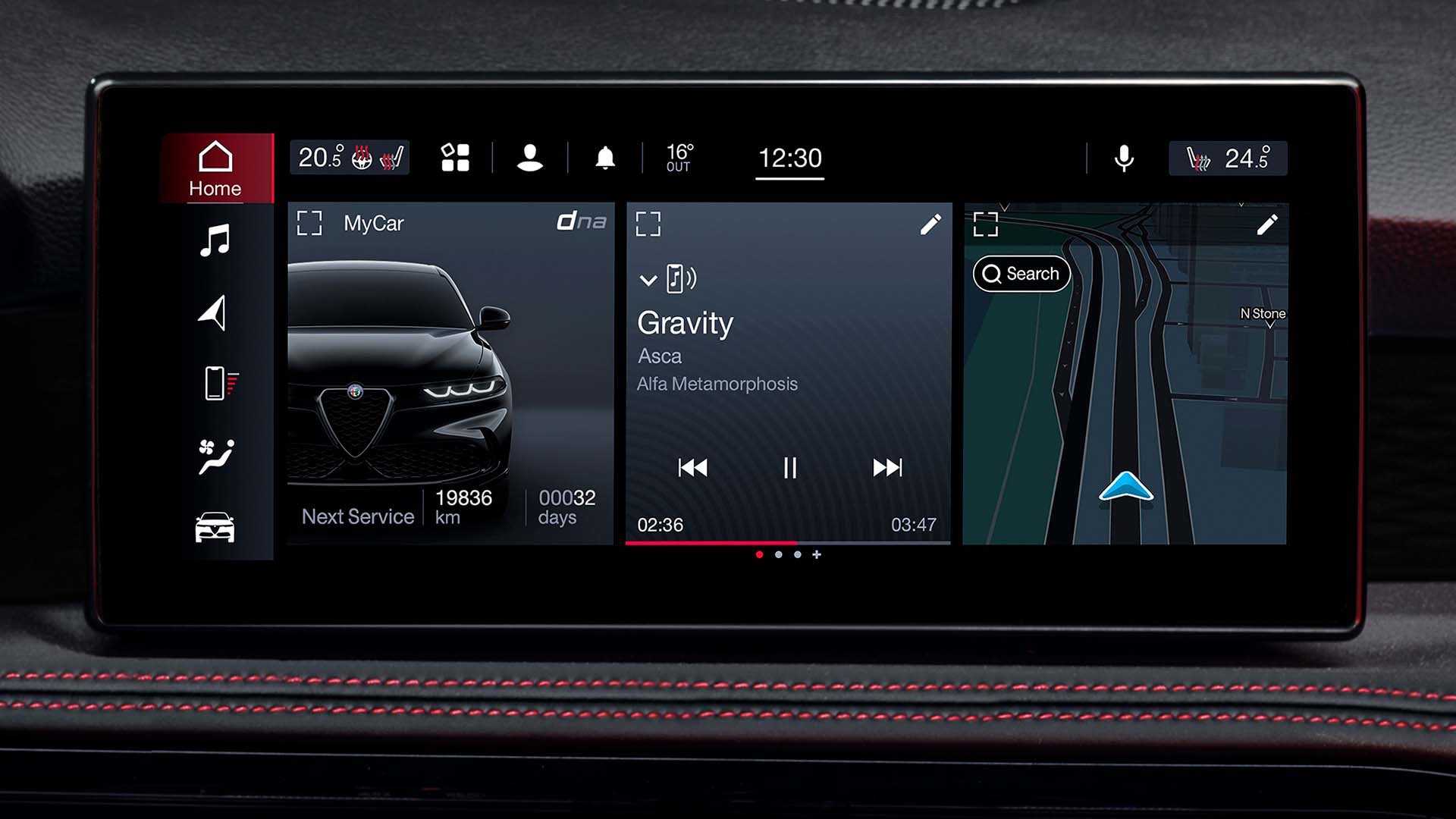 Tonale ir aprīkota ar vairākuzdevumu saskarni, ko iespējams personalizēt. Izmanto intuitīvo sistēmu grafisko ikonu izkārtojuma pielāgošanai – šī sistēma radīs jaunāko viedtālruņa modeļu lietošanas sajūtu. Izvēlies veidu, kā pārvaldīt radio, navigācijas, ADAS un daudzas citas automašīnas funkcijas.