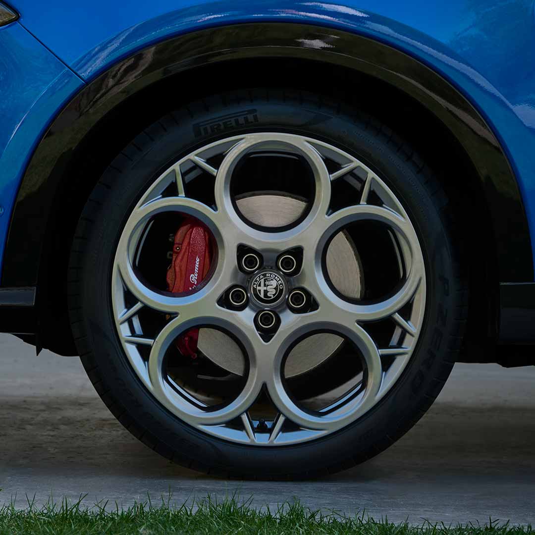 - Brembo® bremzes ar sarkaniem bremžu suportiem un Alfa Romeo logo