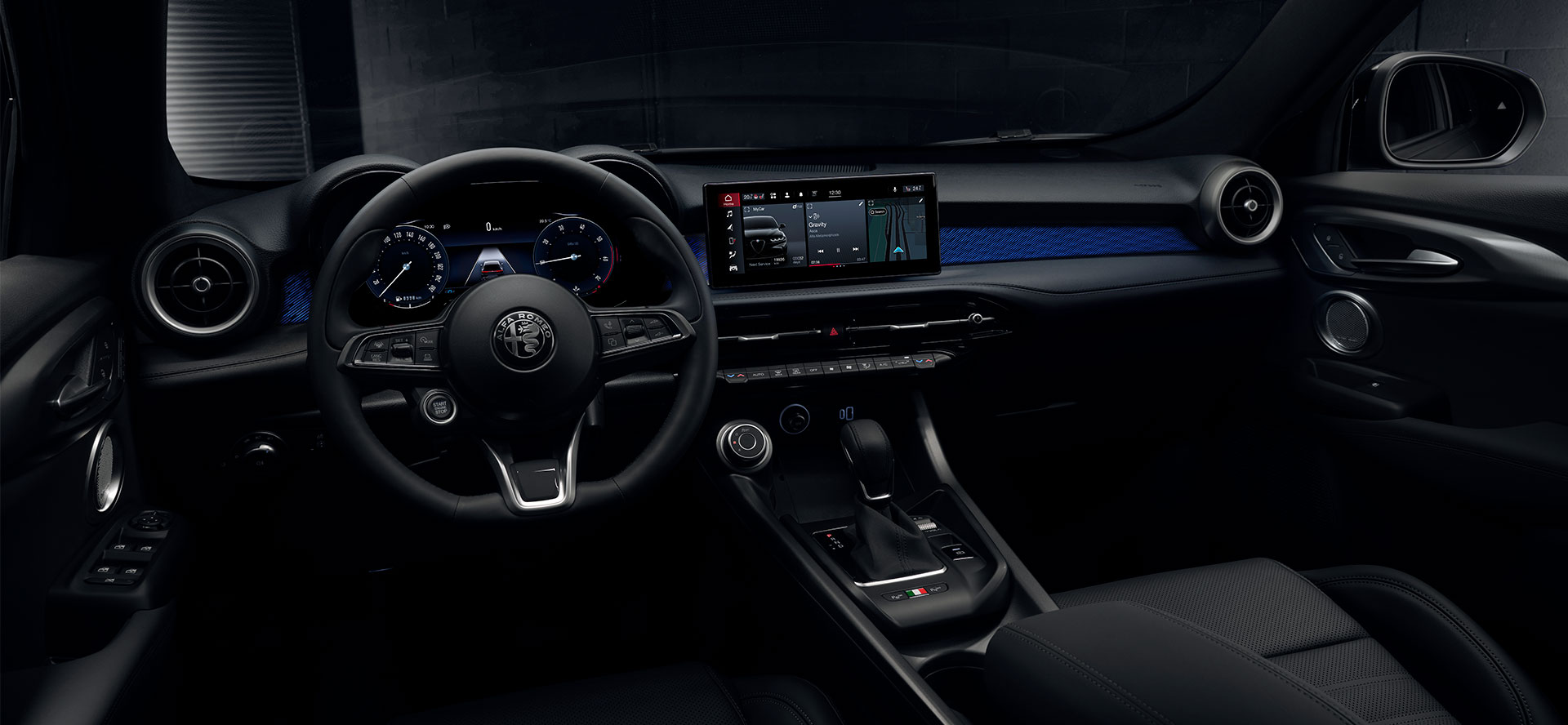 Alfa Romeo radītais binokļa formas instrumentu panelis: 12,3 collu pilnībā digitāls displejs ar daudzām konfigurācijas iespējam. Saņem brīdinājumus no aktīvajām drošības sistēmām, iegūsti precīzu informāciju par uzlādi un izmanto navigācijas sistēmu ērti pārredzamā vietā.